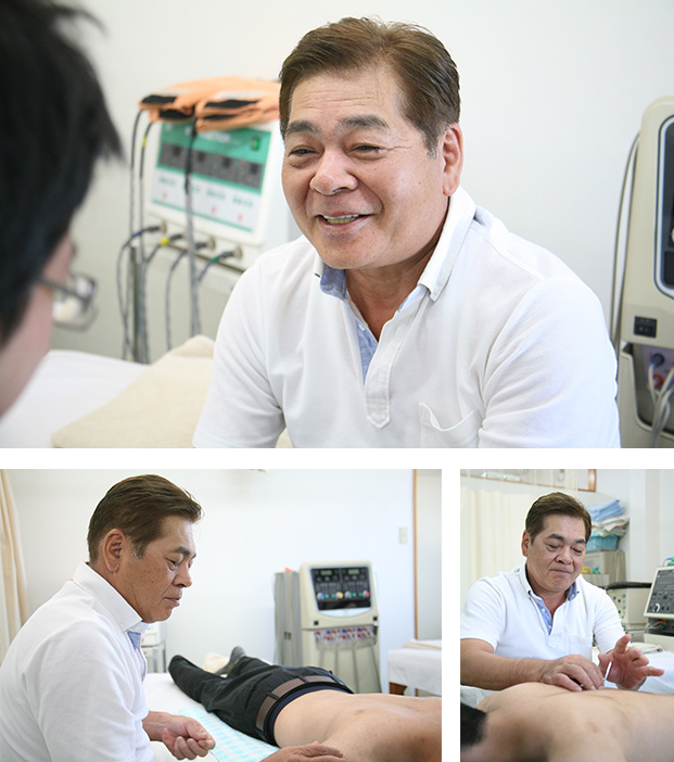 当院は開業から今日まで、子供からお年寄りまで幅広い年齢層の方々に来院していただいております。これまで、より多くの症例・症状を診察し、その時の経験を生かして、患者様の主訴・症状に合わせた治療を心がけ症状や希望により、はり灸マッサージ治療も積極的に行い、大変良い評判をいただいています。今後気楽に安心して受診できる接骨院として信頼される整骨院に育つように一意専心努力していく所存でございますので、どうぞ末永くよろしくお願い申し上げます。
